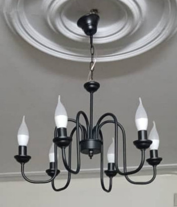 رنگ بدنه لوستر مشگی مات استاتیک است. قابلیت تنظیم ارتفاع دارد. سرپیچ های به کار رفته در لوستر از نوع E 14 است. ارسال لوستر بدون لامپ می باشد. از لامپ های کم مصرف استفاده شود.